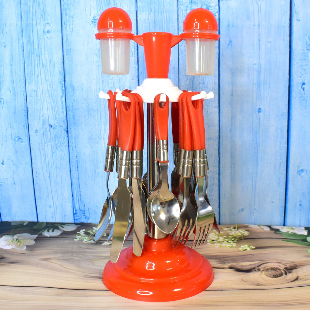 Luxury Cutlery Set for Dining Table Stainless Steel 26-Piece Set, 6 Tea Spoon, 6 Dessert Spoon, 6 Dessert Fork, 6 Soup Soon, 2 Pc Spice Container, With Stand (1 Set)