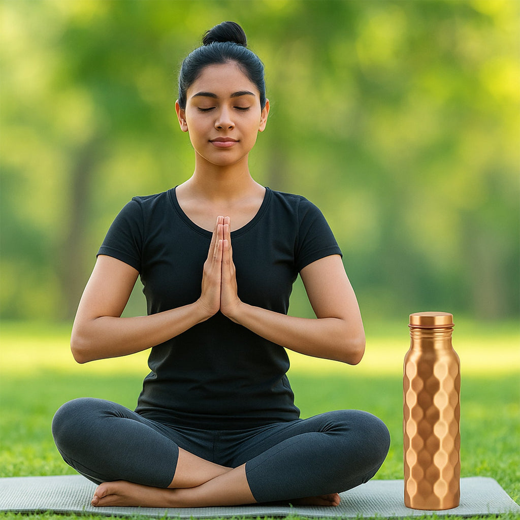 • Benefits:- water stored overnight in copper bottle has ayurvedic health benefits, helps in preventing heart diseases and maintaining cardiovascular health, helps in preventing cancer, regulates the working of the thyroid glands, prevents water-borne diseases, aids in weight loss, helps in regulating women's healthy menstrual periods