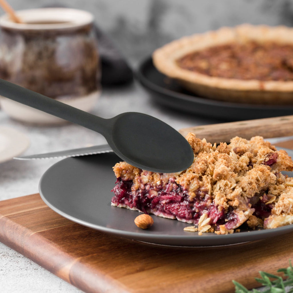 - This is perfect for your kitchen needs. Made of top-quality silicon, it's flexible, perfect for stirring, and won't scratch your cookware. Get all the benefits of a silicon kitchen item with this spoon.
