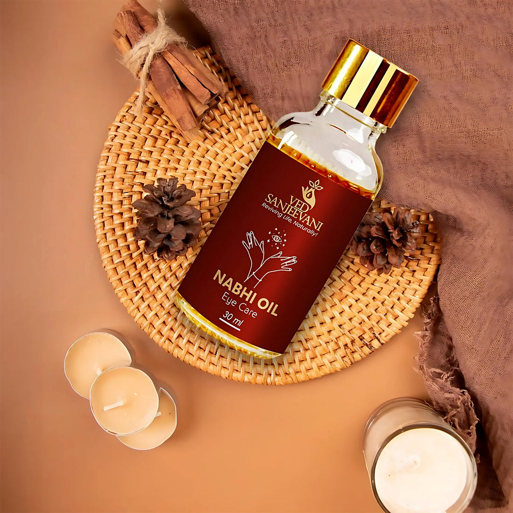 Ved Sanjeevani Nabhi Oil Eye Care is a powerful ayurvedic formulation designed to promote eye health through the ancient practice of navel therapy. With potent herbal infusions, this oil targets tired, strained, and dry eyes while supporting enhanced blood circulation around the eye region. Regular application to the navel (nabhi) activates vital energy points that nourish your vision from within, offering a holistic and non-invasive eye wellness experience. Ideal for those spending long hours on screens or suffering from eye fatigue, puffiness, or blurred vision.